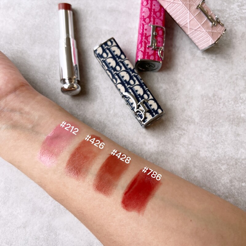 迪奥瘾诱唇膏2025年新色#212、#426、#428、#786手部试色。 迪奥瘾诱唇膏2025年新色主打色手部试色。