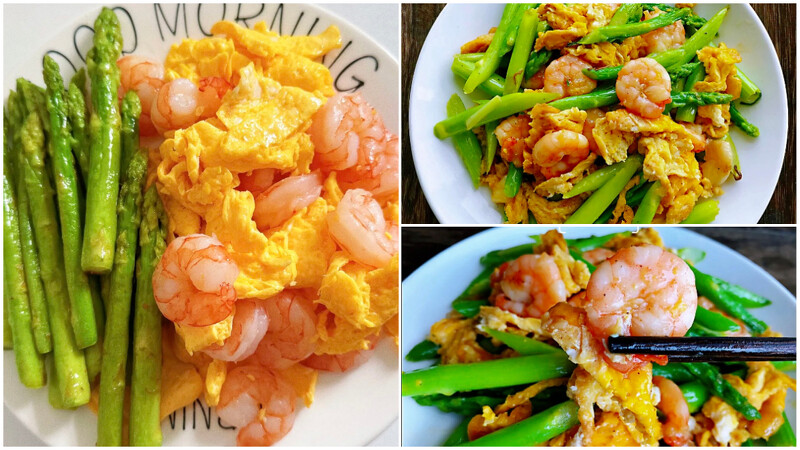 01. 芦笋去老根,切段,汆烫后备用。02. 虾仁去肠泥,调味腌製片刻。03. 蛋汁加少许盐打匀,炒至半熟后盛出。04. 下油炒虾仁至变色,加入芦笋翻炒,最后倒入蛋液炒匀即可。