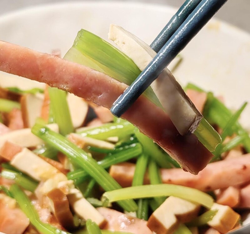 01. 芹菜去叶切段,汆烫后过凉。02. 豆乾切丝,与芹菜混合。03. 加入蒜末、酱油、香油、醋拌匀即可。